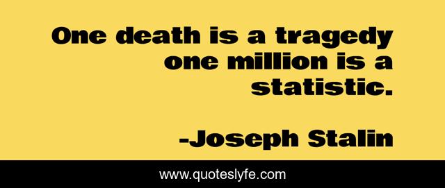 This page presents the quote "One death is a tragedy one million is a statistic.". Author of this quote is Joseph Stalin. This quote is about million, tragedy, statistic,.