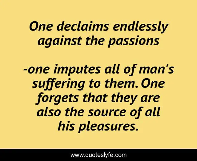 "one imputes all of man's suffering to them. One forgets that they are also the source of all his pleasures. Quotes." Quoteslyfe.com, 2025. Fri. 05 Dec. 2025. <https://www.quoteslyfe.com/quote/One-declaims-endlessly-against-the-passions-92281>.