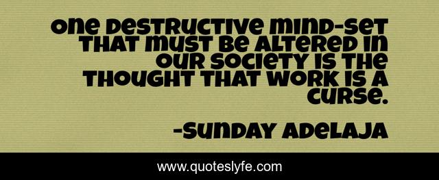 This page presents the quote "One destructive mind-set that must be altered in our society is the thought that work is a curse.". Author of this quote is Sunday Adelaja. This quote is about society, curse, mind-set,.