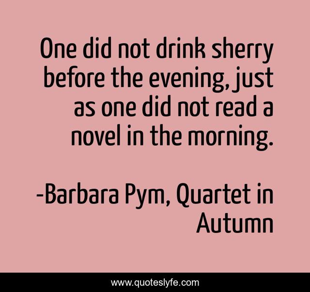 This page presents the quote "One did not drink sherry before the evening, just as one did not read a novel in the morning.". Author of this quote is Barbara Pym, Quartet in Autumn. This quote is about sherry, novels,.