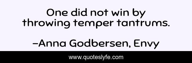 "Anna Godbersen, Envy Quotes." Quoteslyfe.com, 2025. Fri. 05 Dec. 2025. <https://www.quoteslyfe.com/quote/One-did-not-win-by-throwing-temper-249528>.