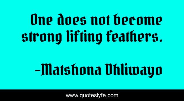 "Matshona Dhliwayo Quotes." Quoteslyfe.com, 2025. Sun. 07 Dec. 2025. <https://www.quoteslyfe.com/quote/One-does-not-become-strong-lifting-feathers-83649>.