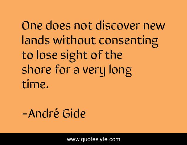 This page presents the quote "One does not discover new lands without consenting to lose sight of the shore for a very long time.". Author of this quote is André Gide. This quote is about courage, adventure, journey,.