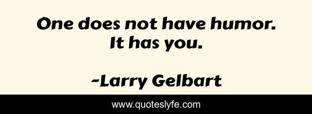 This page presents the quote "One does not have humor. It has you.". Author of this quote is Larry Gelbart. This quote is about comedy, humor,.