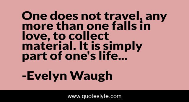 This page presents the quote "One does not travel, any more than one falls in love, to collect material. It is simply part of one's life...". Author of this quote is Evelyn Waugh. This quote is about travel, writing-inspiration, writing-advice,.