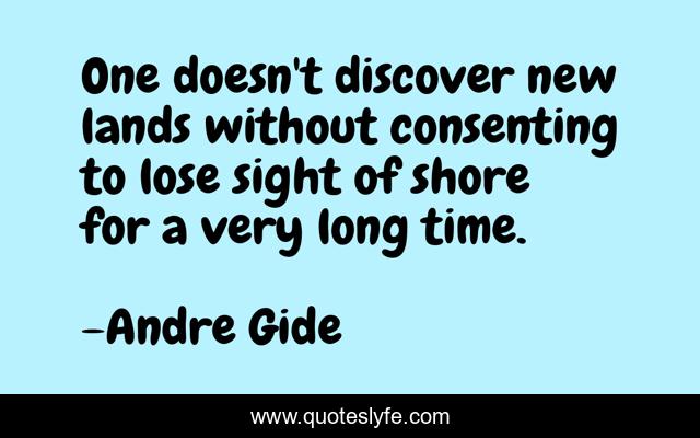This page presents the quote "One doesn't discover new lands without consenting to lose sight of shore for a very long time.". Author of this quote is Andre Gide. This quote is about uncertainties, doubts,.