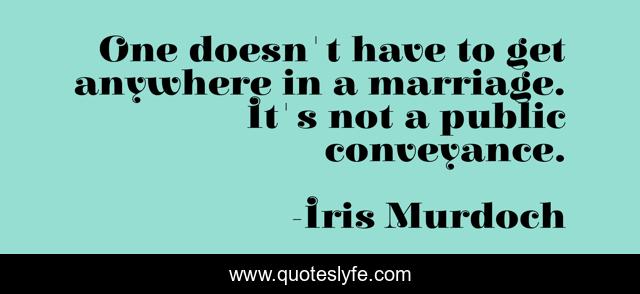 This page presents the quote "One doesn't have to get anywhere in a marriage. It's not a public conveyance.". Author of this quote is Iris Murdoch. This quote is about anywhere, public, get,.