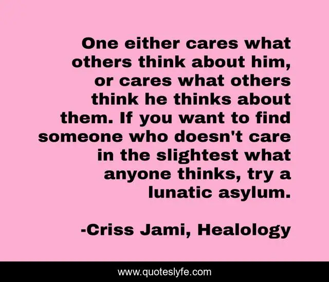 "Criss Jami, Healology Quotes." Quoteslyfe.com, 2025. Sat. 06 Dec. 2025. <https://www.quoteslyfe.com/quote/One-either-cares-what-others-think-about-103581>.