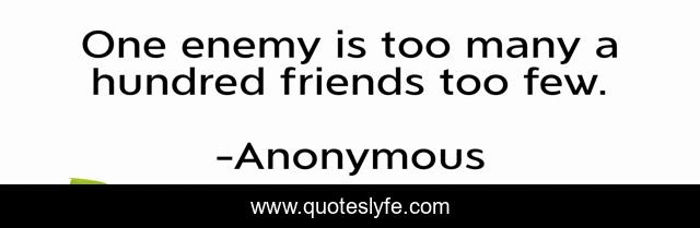 This page presents the quote "One enemy is too many a hundred friends too few.". Author of this quote is Anonymous. .
