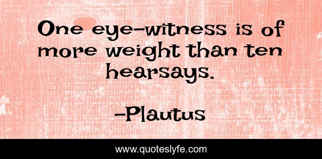 This page presents the quote "One eye-witness is of more weight than ten hearsays.". Author of this quote is Plautus. .
