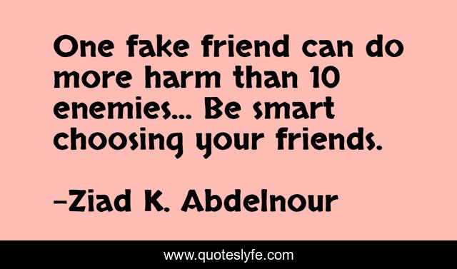 This page presents the quote "One fake friend can do more harm than 10 enemies... Be smart choosing your friends.". Author of this quote is Ziad K. Abdelnour. This quote is about enemies, friends, fake,.