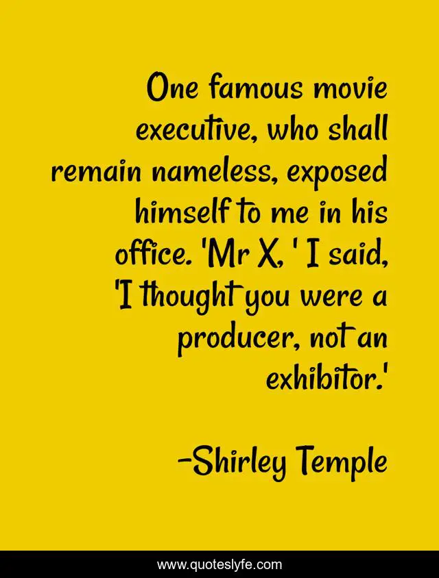 "Shirley Temple Quotes." Quoteslyfe.com, 2025. Sat. 06 Dec. 2025. <https://www.quoteslyfe.com/quote/One-famous-movie-executive-who-shall-remain-291929>.