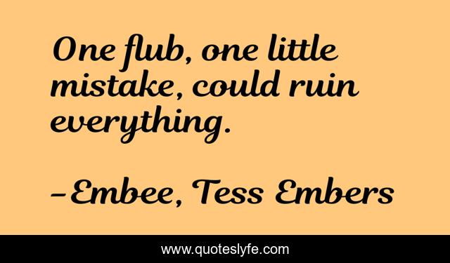 This page presents the quote "One flub, one little mistake, could ruin everything.". Author of this quote is Embee, Tess Embers. .