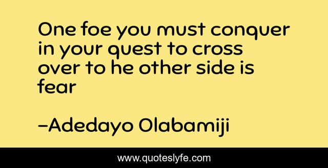 This page presents the quote "One foe you must conquer in your quest to cross over to he other side is fear". Author of this quote is Adedayo Olabamiji. This quote is about fearless, fear,.