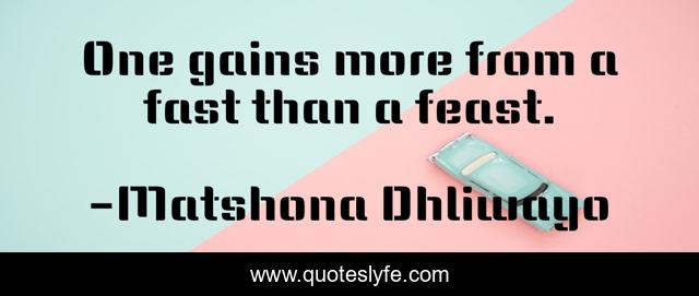 "Matshona Dhliwayo Quotes." Quoteslyfe.com, 2025. Fri. 05 Dec. 2025. <https://www.quoteslyfe.com/quote/One-gains-more-from-a-fast-than-121225>.
