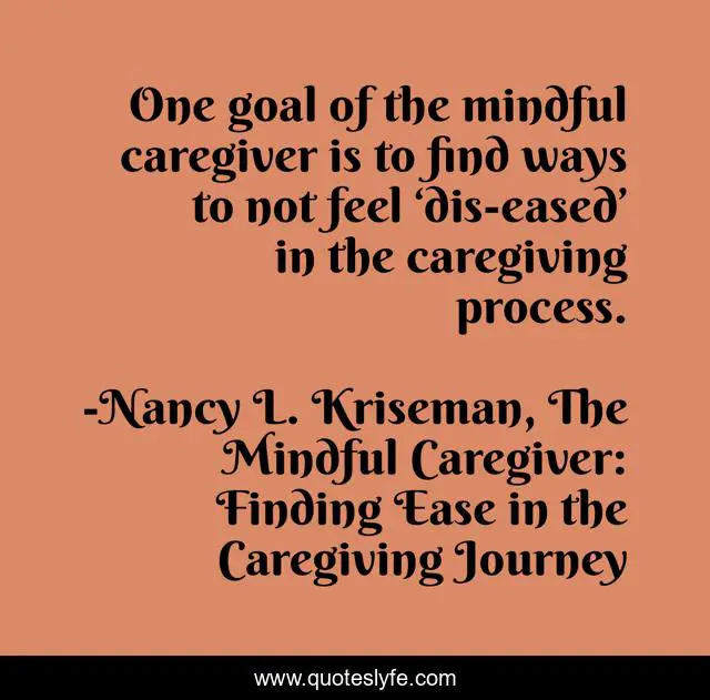 "Nancy L. Kriseman, The Mindful Caregiver: Finding Ease in the Caregiving Journey Quotes." Quoteslyfe.com, 2025. Mon. 08 Dec. 2025. <https://www.quoteslyfe.com/quote/One-goal-of-the-mindful-caregiver-is-185898>.