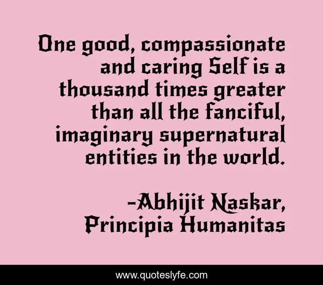 "Abhijit Naskar, Principia Humanitas Quotes." Quoteslyfe.com, 2025. Fri. 05 Dec. 2025. <https://www.quoteslyfe.com/quote/One-good-compassionate-and-caring-Self-is-72617>.