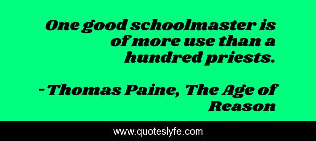 "Thomas Paine, The Age of Reason Quotes." Quoteslyfe.com, 2025. Fri. 05 Dec. 2025. <https://www.quoteslyfe.com/quote/One-good-schoolmaster-is-of-more-use-29654>.
