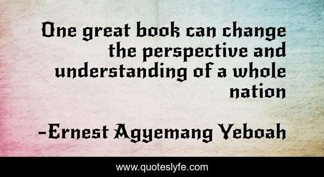 This page presents the quote "One great book can change the perspective and understanding of a whole nation". Author of this quote is Ernest Agyemang Yeboah. This quote is about reading, books, educational-philosophy, understanding,.