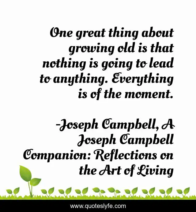 "Joseph Campbell, A Joseph Campbell Companion: Reflections on the Art of Living Quotes." Quoteslyfe.com, 2025. Mon. 08 Dec. 2025. <https://www.quoteslyfe.com/quote/One-great-thing-about-growing-old-is-242792>.