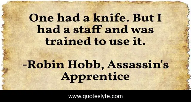 This page presents the quote "One had a knife. But I had a staff and was trained to use it.". Author of this quote is Robin Hobb, Assassin's Apprentice. .