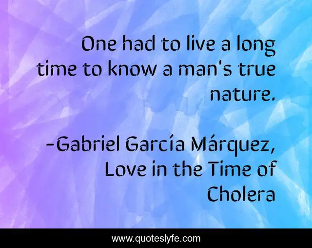 This page presents the quote "One had to live a long time to know a man's true nature.". Author of this quote is Gabriel García Márquez, Love in the Time of Cholera. This quote is about nature, knowledge, man, personality,.