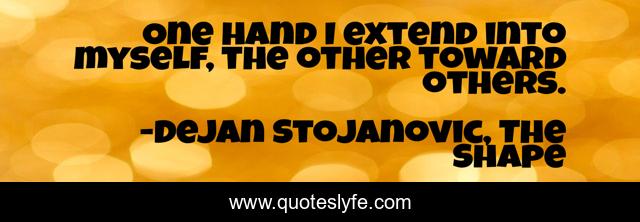 "Dejan Stojanovic, The Shape Quotes." Quoteslyfe.com, 2025. Fri. 05 Dec. 2025. <https://www.quoteslyfe.com/quote/One-hand-I-extend-into-myself-the-112284>.