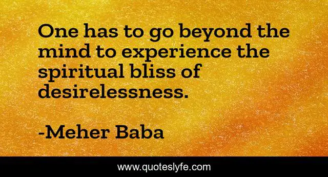 This page presents the quote "One has to go beyond the mind to experience the spiritual bliss of desirelessness.". Author of this quote is Meher Baba. This quote is about mind, spiritual, bliss,.