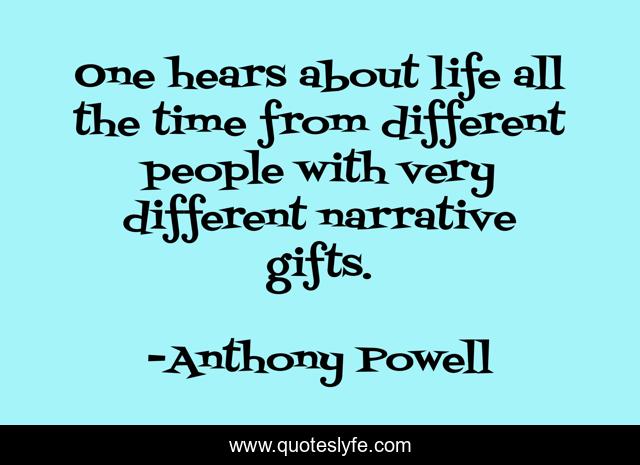 This page presents the quote "One hears about life all the time from different people with very different narrative gifts.". Author of this quote is Anthony Powell. .