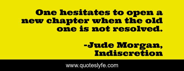 This page presents the quote "One hesitates to open a new chapter when the old one is not resolved.". Author of this quote is Jude Morgan, Indiscretion. This quote is about life, regrets,.