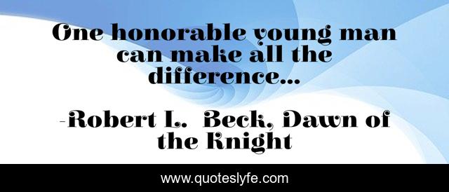 This page presents the quote "One honorable young man can make all the difference...". Author of this quote is Robert L. Beck, Dawn of the Knight. This quote is about action-thriller, romance, teen-fiction, teen-angst, young-adult, suspense-thriller,.