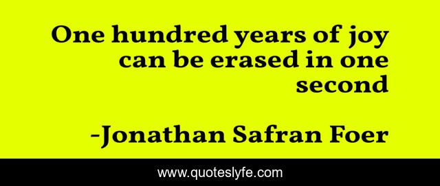 This page presents the quote "One hundred years of joy can be erased in one second". Author of this quote is Jonathan Safran Foer. .