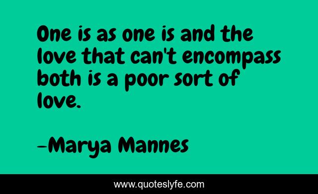 This page presents the quote "One is as one is and the love that can't encompass both is a poor sort of love.". Author of this quote is Marya Mannes. .