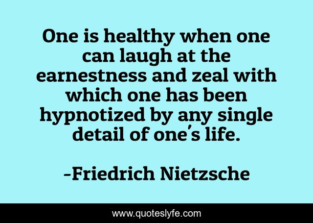This page presents the quote "One is healthy when one can laugh at the earnestness and zeal with which one has been hypnotized by any single detail of one's life.". Author of this quote is Friedrich Nietzsche. This quote is about sanity, insanity,.