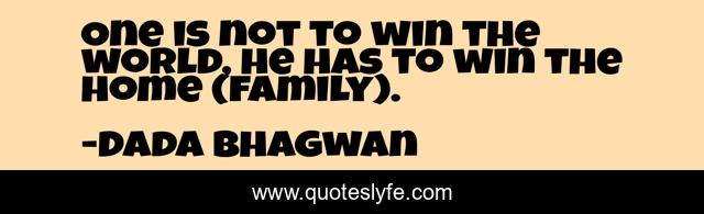 This page presents the quote "One is not to win the world, he has to win the home (family).". Author of this quote is Dada Bhagwan. This quote is about home, family-relationships, love, spiritual, affection,.