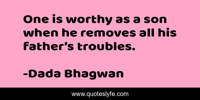 This page presents the quote "One is worthy as a son when he removes all his father’s troubles.". Author of this quote is Dada Bhagwan. This quote is about spiritual, fathers-and-sons, father, son, parenting, parents, child, children, father-and-son,.