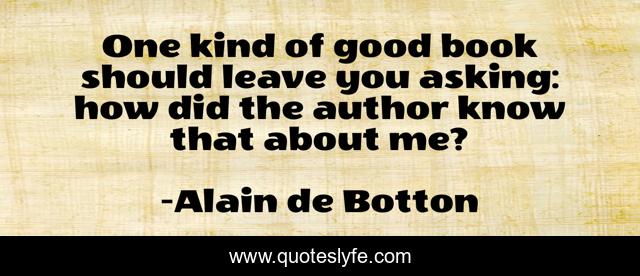 This page presents the quote "One kind of good book should leave you asking: how did the author know that about me?". Author of this quote is Alain de Botton. This quote is about authors, self, books, writing,.
