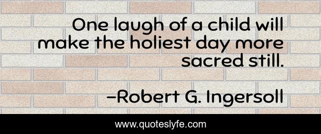 This page presents the quote "One laugh of a child will make the holiest day more sacred still.". Author of this quote is Robert G. Ingersoll. .