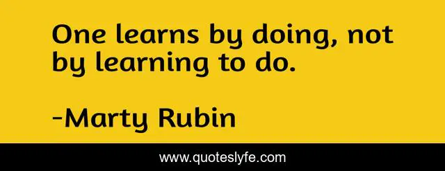 "Marty Rubin Quotes." Quoteslyfe.com, 2025. Sat. 06 Dec. 2025. <https://www.quoteslyfe.com/quote/One-learns-by-doing-not-by-learning-117519>.