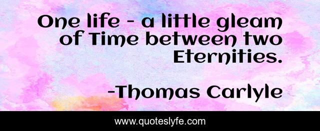 This page presents the quote "One life - a little gleam of Time between two Eternities.". Author of this quote is Thomas Carlyle. .