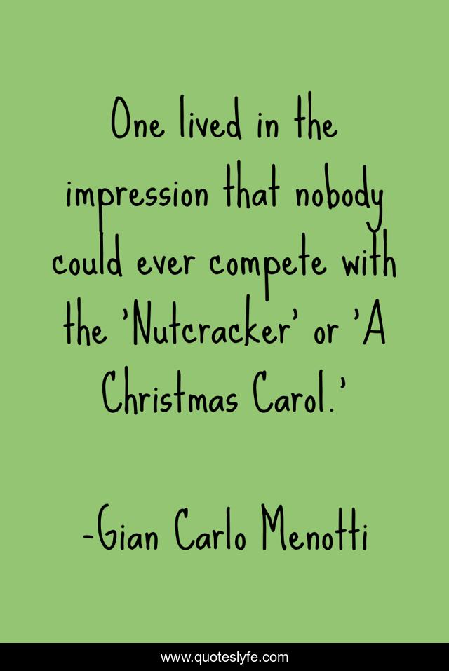 This page presents the quote "One lived in the impression that nobody could ever compete with the 'Nutcracker' or 'A Christmas Carol.'". Author of this quote is Gian Carlo Menotti. This quote is about impression, nobody, compete,.
