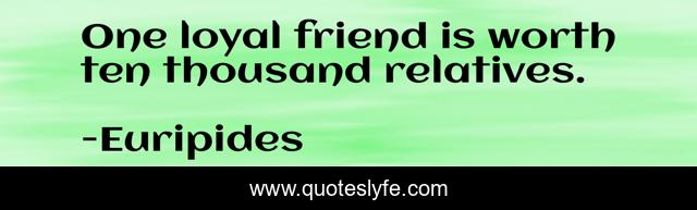 This page presents the quote "One loyal friend is worth ten thousand relatives.". Author of this quote is Euripides. .