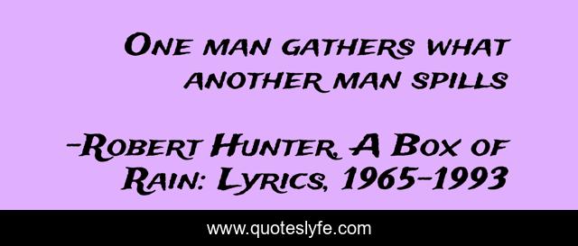 "Robert Hunter, A Box of Rain: Lyrics, 1965-1993 Quotes." Quoteslyfe.com, 2025. Fri. 05 Dec. 2025. <https://www.quoteslyfe.com/quote/One-man-gathers-what-another-man-spills-37355>.