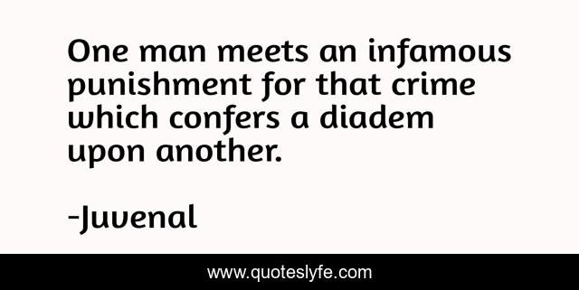 This page presents the quote "One man meets an infamous punishment for that crime which confers a diadem upon another.". Author of this quote is Juvenal. .