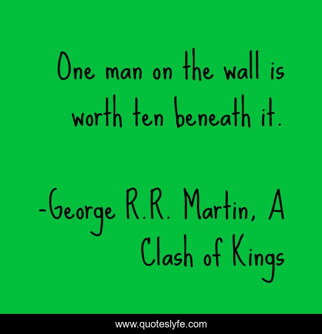 "George R.R. Martin, A Clash of Kings Quotes." Quoteslyfe.com, 2025. Fri. 05 Dec. 2025. <https://www.quoteslyfe.com/quote/One-man-on-the-wall-is-worth-235478>.