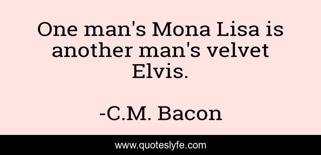 This page presents the quote "One man's Mona Lisa is another man's velvet Elvis.". Author of this quote is C.M. Bacon. .