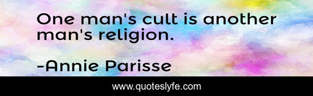 This page presents the quote "One man's cult is another man's religion.". Author of this quote is Annie Parisse. This quote is about cult, another, man,.