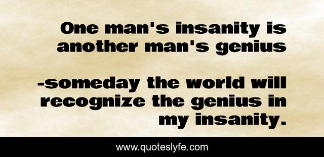 This page presents the quote "One man's insanity is another man's genius". Author of this quote is someday the world will recognize the genius in my insanity.. .