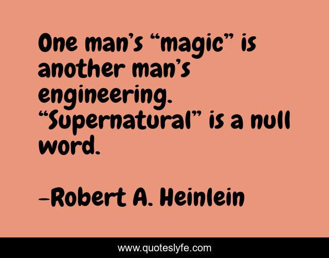 This page presents the quote "One man’s “magic” is another man’s engineering. “Supernatural” is a null word.". Author of this quote is Robert A. Heinlein. This quote is about engineering, magic,.