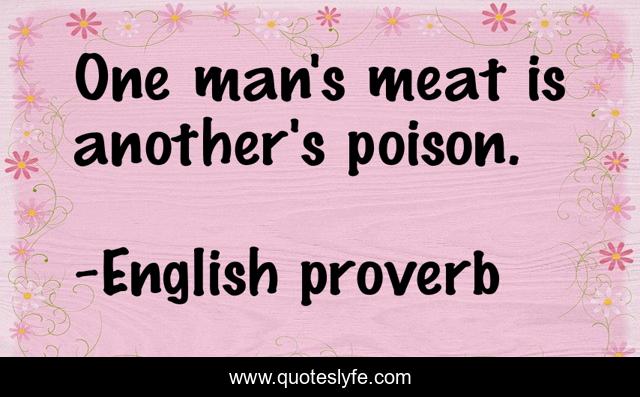 "English proverb Quotes." Quoteslyfe.com, 2025. Mon. 08 Dec. 2025. <https://www.quoteslyfe.com/quote/One-man-s-meat-is-another-s-273039>.
